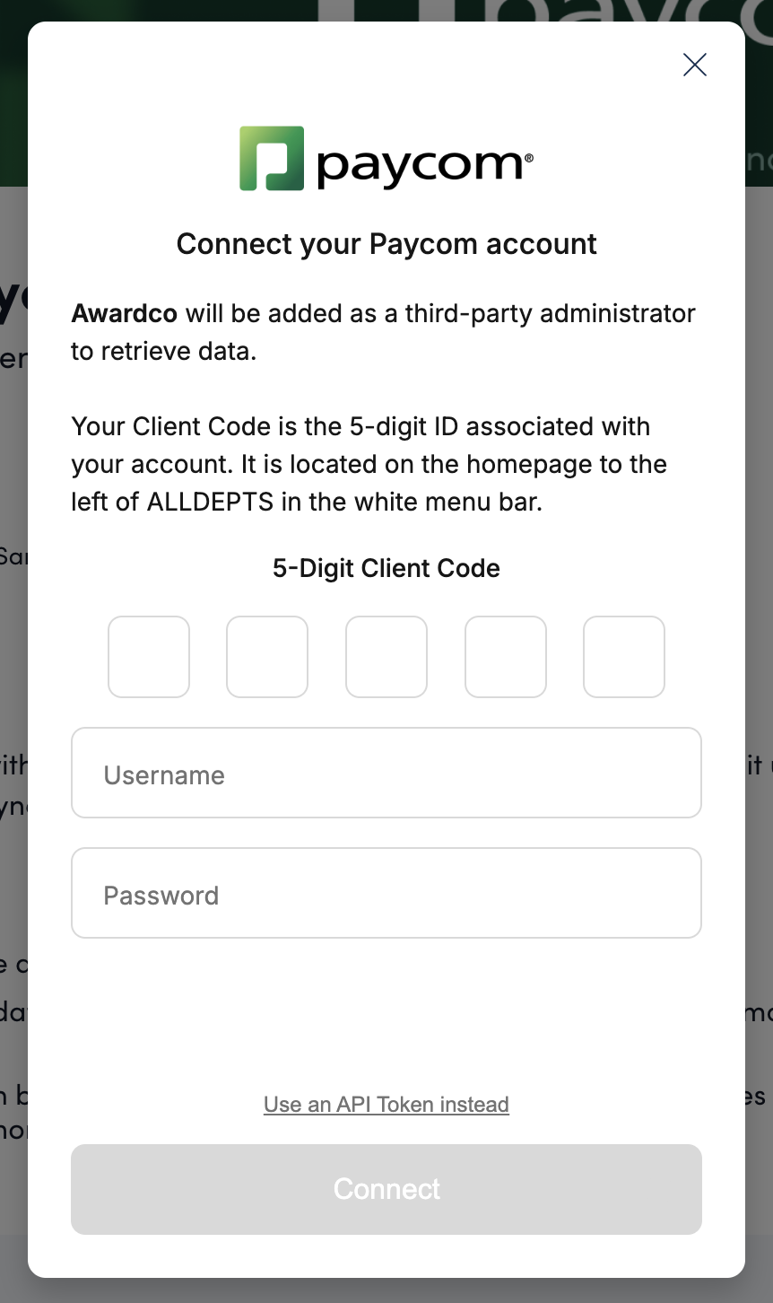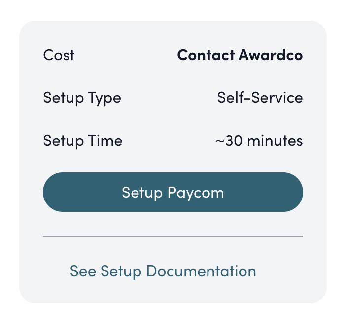 Note: This is a paid feature. Contact an Awardco representative to enable the Paycom integration before proceeding.