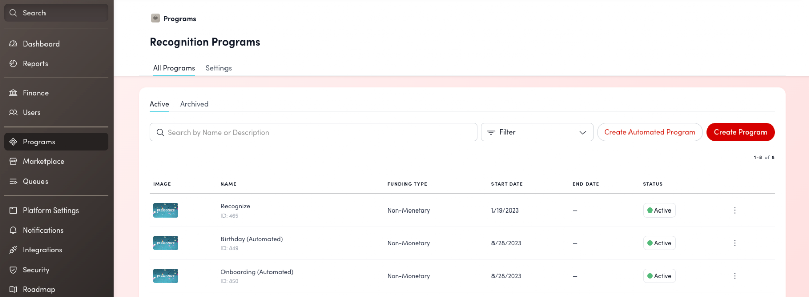 The Recognition Programs in Awardco empowers organizations to create tailored programs for celebrating achievements, milestones, wellness initiatives, and more. With options to customize program settings, approvals, eligibility, display, and more, this feature supports a highly flexible and engaging recognition experience. This support article covers creating, managing, and fine-tuning programs to ensure alignment with organizational goals and seamless user interaction.
