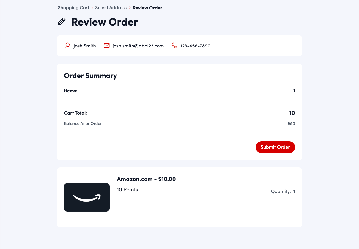 Look over the order summary then click "Submit Order."