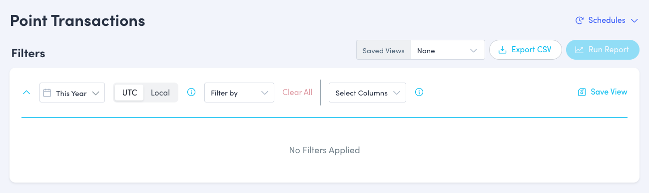 - Select “Insights”, “Reports”, then “Point Transactions” from the left navigation menu.