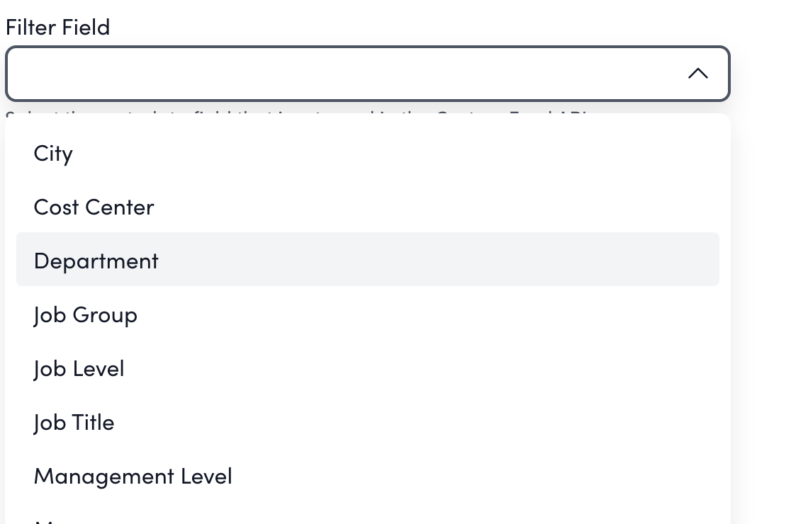 The Filter Field allows you to control how recognitions are filtered based on metadata fields, such as location, department, or any other category relevant to your organization. This filter ensures that only the recognitions that match certain criteria are displayed. To configure the filter field: