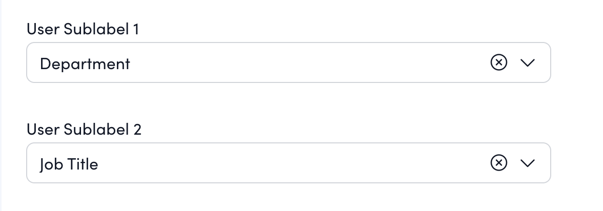 - Under Sublabel 1 and Sublabel 2, select the metadata fields you want to display. Common examples include Department and Job Title.