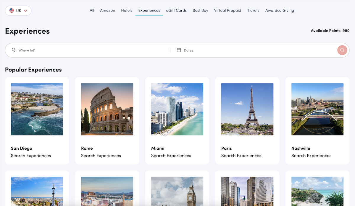 - Toggle the Items I can afford switch to view experiences within your point budget.