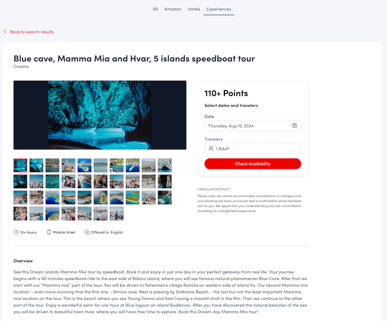 - Access Redemption Details: Once you find an experience that interests you, click on it to open the redemption screen. Here, you can review all the details about the experience.