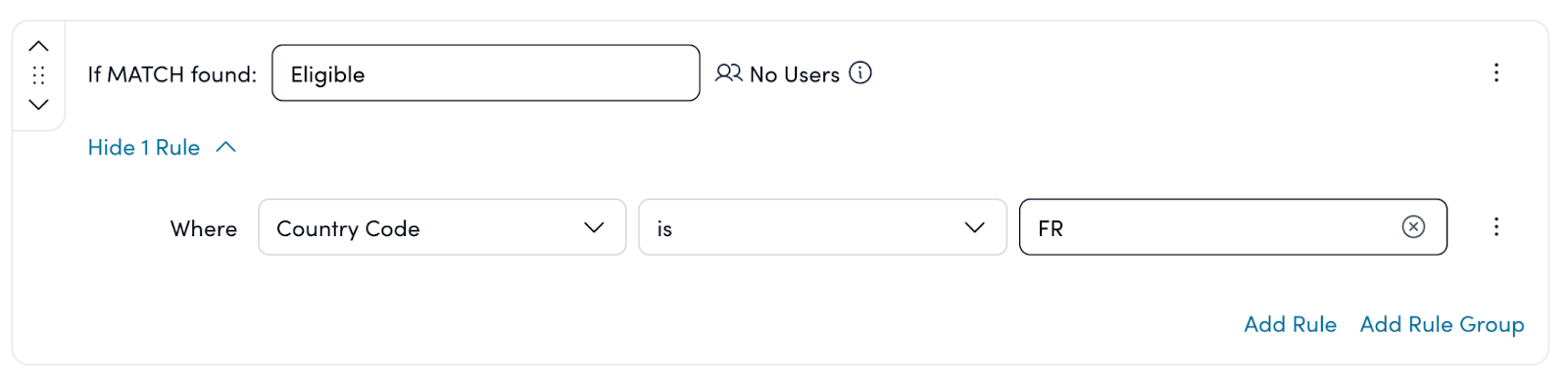 To identify employees in France for a recognition program, you would create a condition like “Where Country Code is FR.” This rule would assign the specified value (e.g., “Eligible”) to all employees with “FR” in their Country Code field.