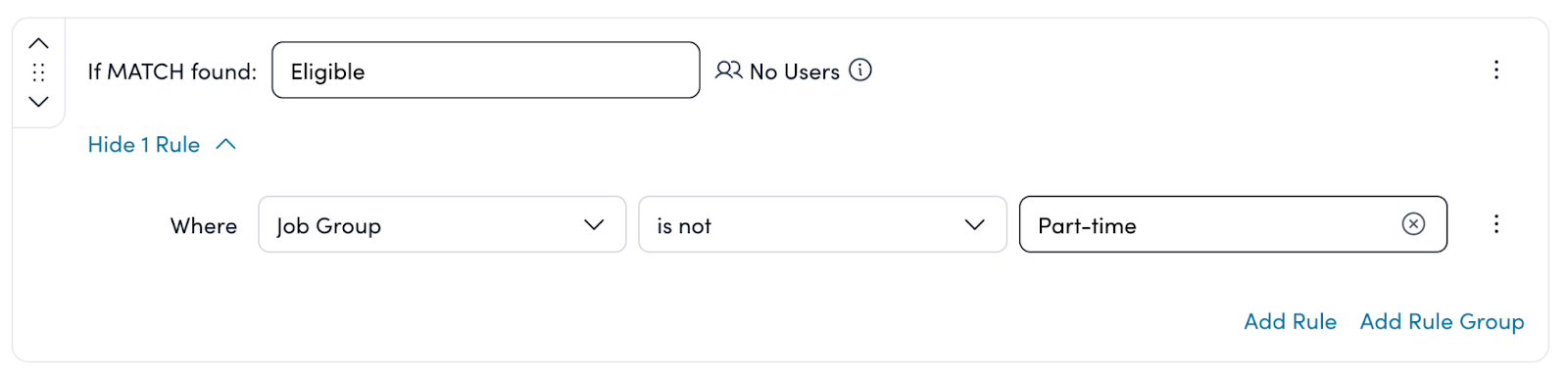 Conversely, if you need to exclude a specific group, such as “Part-time” employees, the “Is not” logic is useful. The condition could be set as “Where Job Group is not Part-time.”