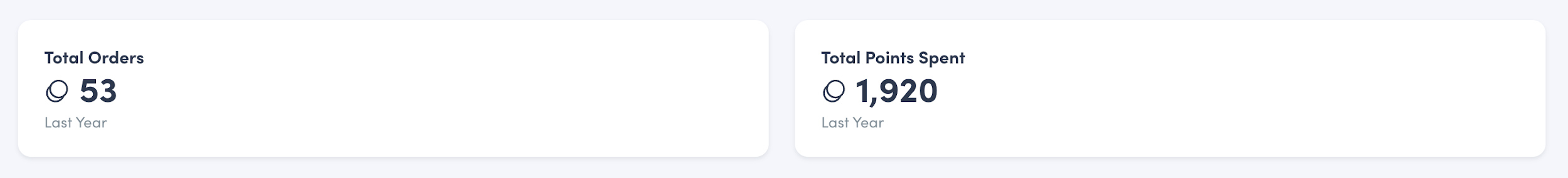 This section displays two key data points: the total number of orders placed within the filtered time period and the total points spent on those orders.