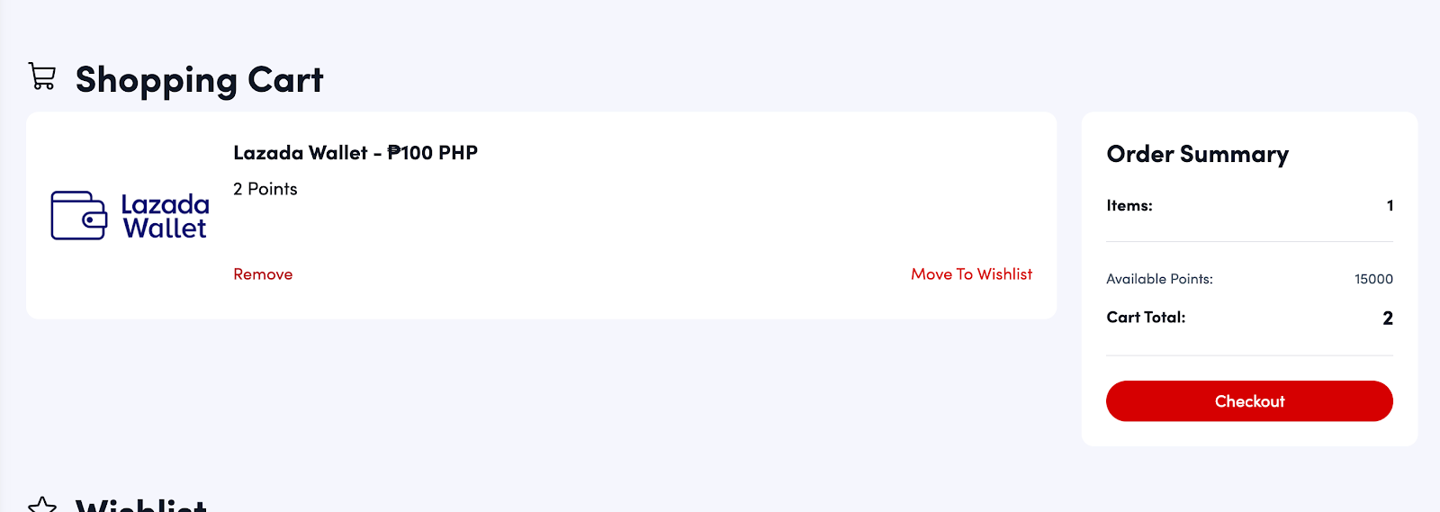 Lazada Wallets is a redemption option exclusively available to users located in the Philippines whose organizations have enabled this feature. Instead of receiving a traditional Lazada Gift Card, the value of your redeemed Awardco points will be directly transferred to your linked Lazada Wallet account.