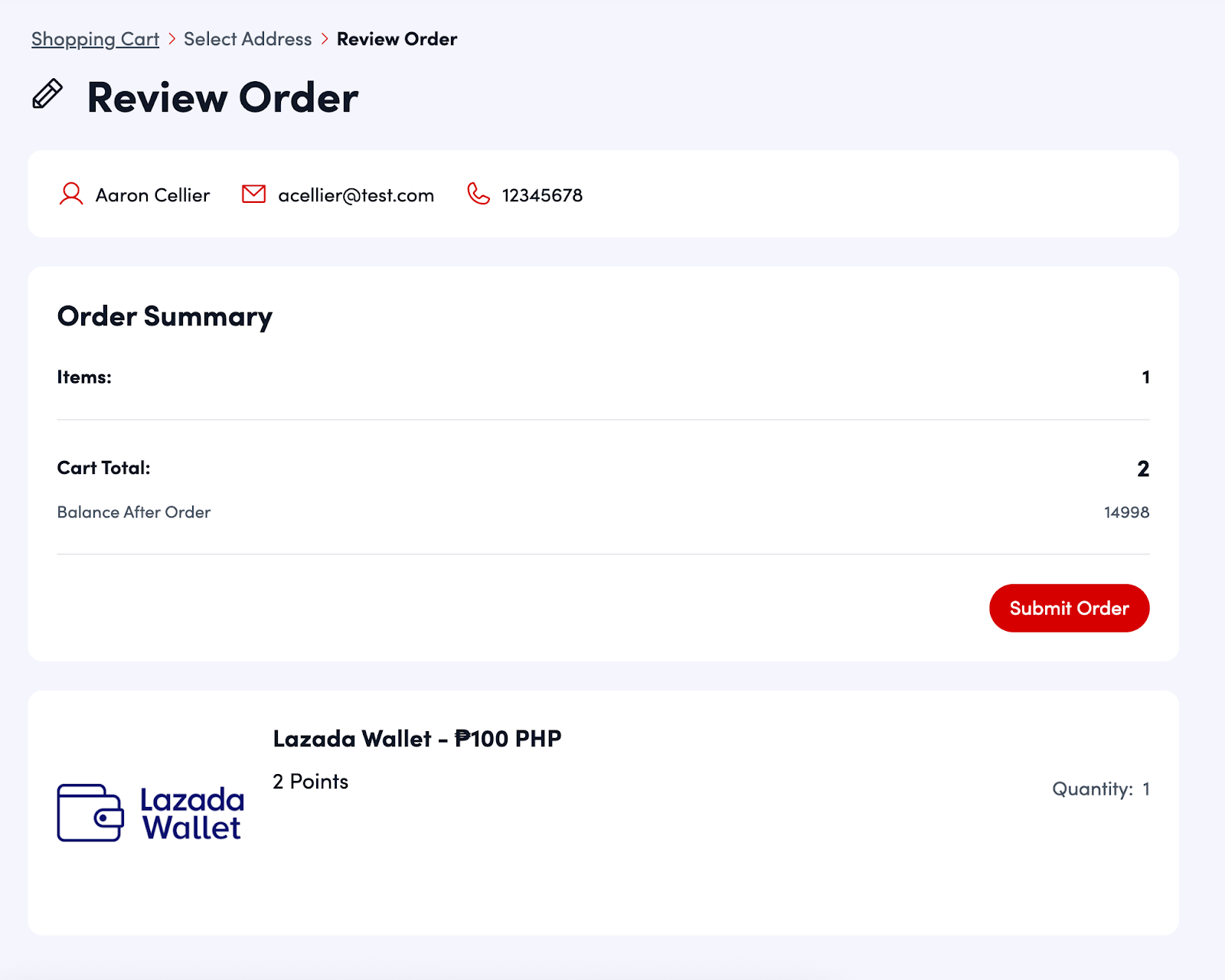 Note: Please ensure that the email address and phone number associated with your Lazada account exactly match the information you provide during checkout with Awardco.