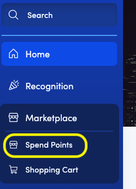On the homepage, select “Marketplace” from the left navigation menu, then click “Spend Points.”