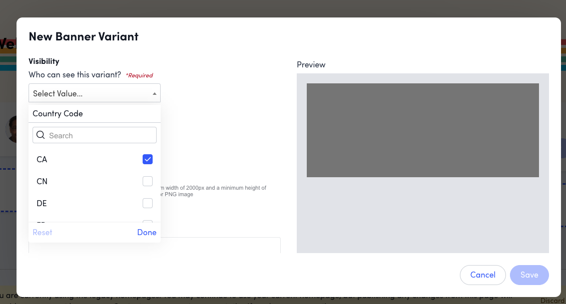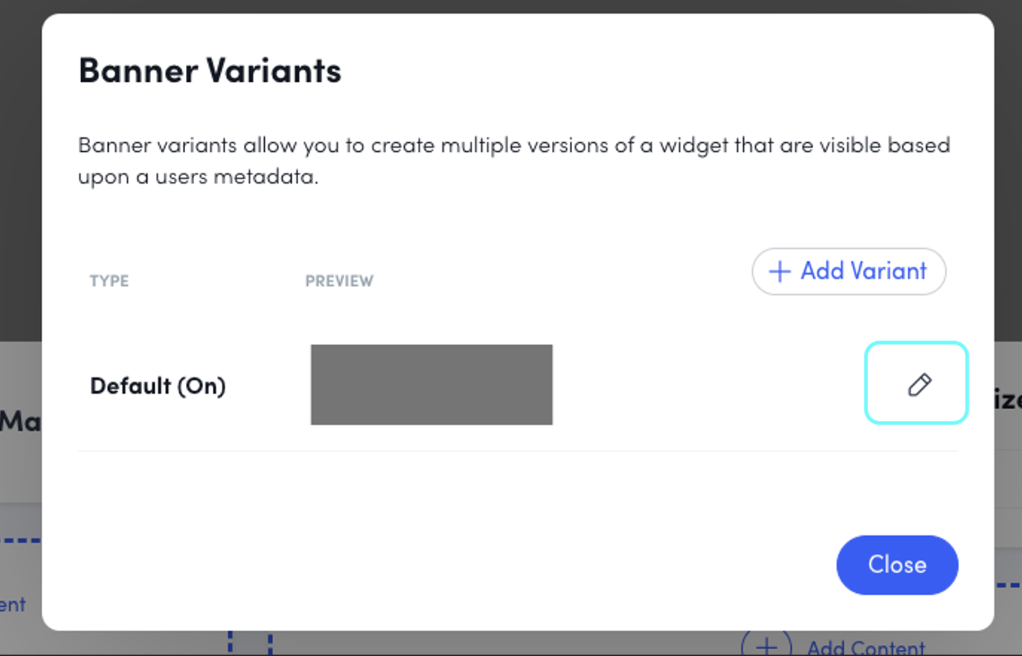 Create multiple banner variations, or variants, based on user metadata. This is particularly useful if multiple companies access the platform and you want employees from different organizations to see distinct banner images. You might also want to display different banners to employees in different countries.