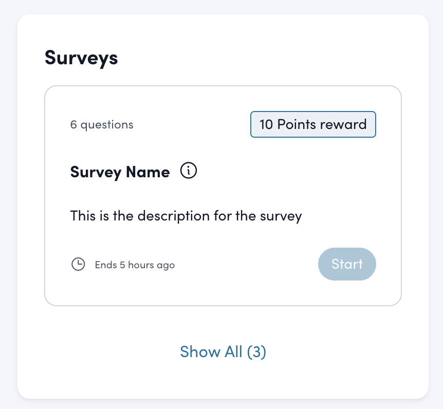 If your organization is running surveys through Awardco’s Surveys feature, you can add a widget to the homepage displaying relevant surveys for your workforce. Select “Add Content” on the left side of the page and click "Add" next to "Surveys Widget." The widget will display surveys that the user is eligible to participate in.
