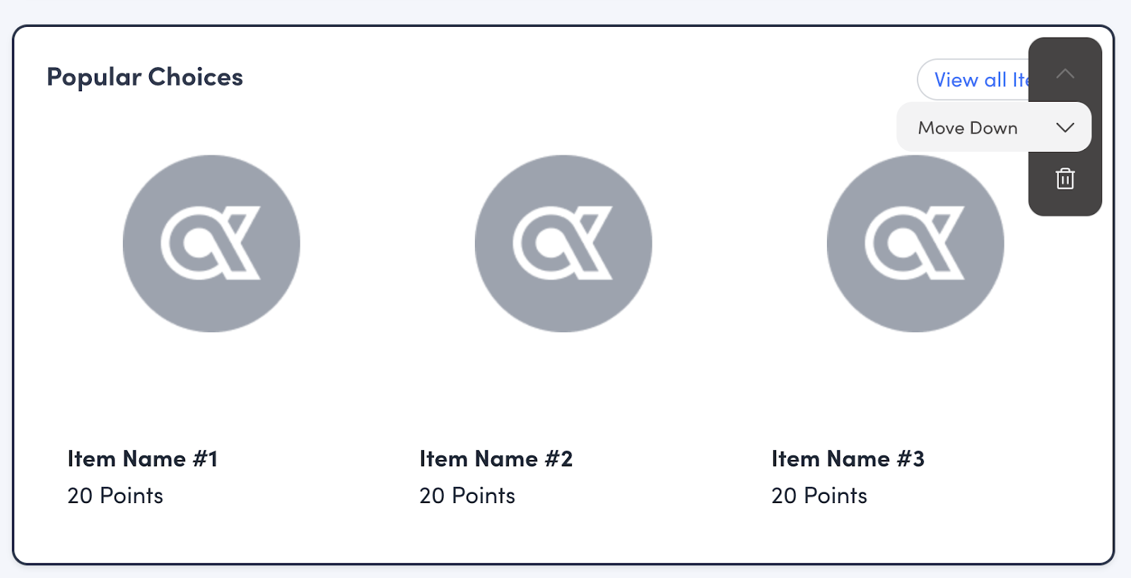 Notes: This widget functions best when the Spend Points Landing Page is enabled. We advise against using award network-specific or metadata-limited catalogs, as they may not display content for all users, leading to a negative experience.
