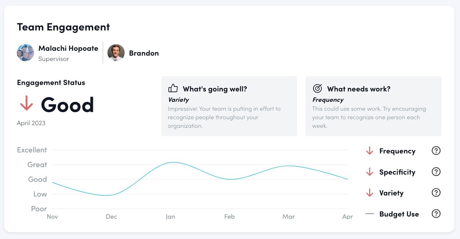 The Team Engagement widget provides managers with valuable insights into how their direct reports are interacting with recognition programs on the Awardco platform. This widget will only be visible to users with direct reports. Select “Add Content” on the right side of the page and click "Add" next to "Team Engagement".