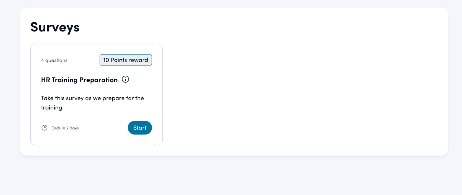 Depending on your organization's configuration and whether your platform includes recognition features, you may be awarded points upon completion. Please note that on platforms used exclusively for engagement and surveys, points are typically not awarded for survey completion.