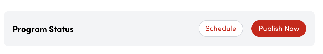To make the program "active" or "live," select either Publish Now or Schedule, located at the top of the program settings page. Publish Now will activate the program immediately upon selection. Schedule allows you to set a specific date and time in the future for program activation.