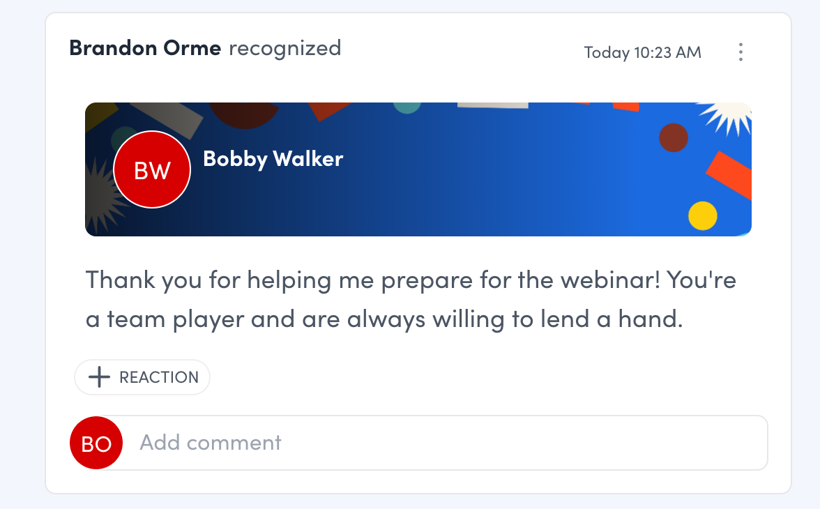 View the recognition on the public social feed.