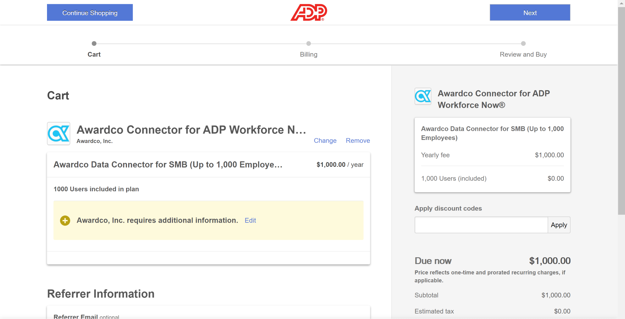 - Go to ADP using the link provided in the modal and click “Buy Now”.