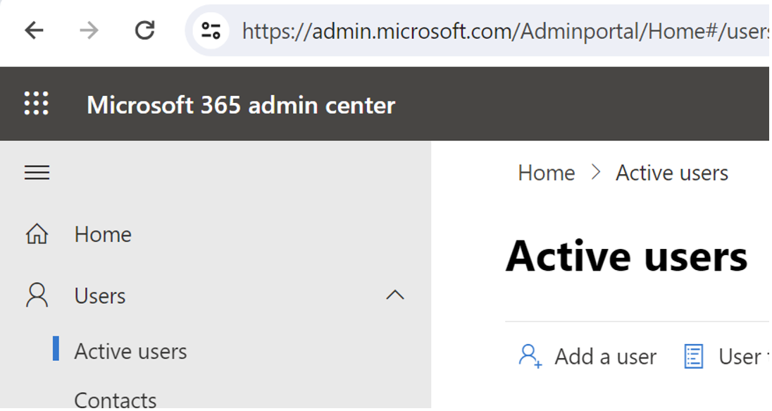 - Log into the Microsoft 365 Admin Center as a Microsoft 365 admin. https://admin.microsoft.com/Adminportal/Home#/users