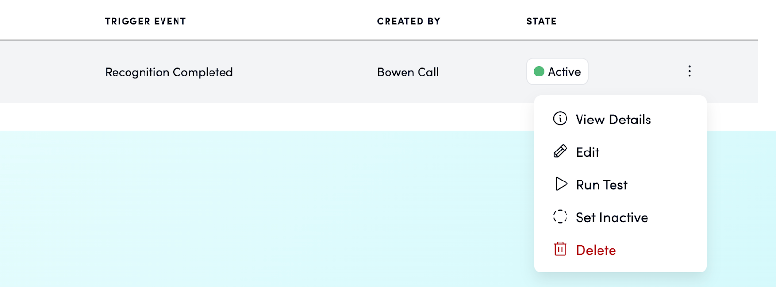 - A: Currently, "Recognition Complete" is the only available trigger event. We are exploring adding more trigger event types in the future. If you have a specific use case, please reach out to your Awardco point of contact.