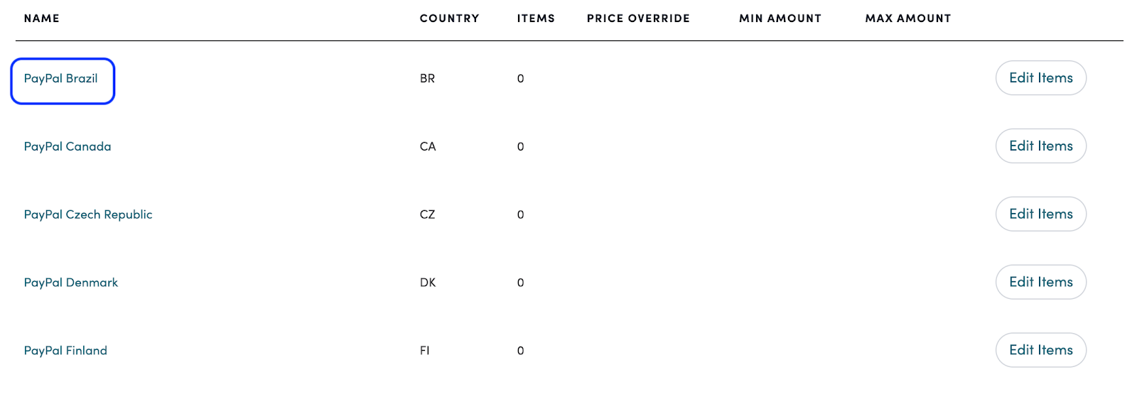 - Find and click on one of the PayPal catalogs. The naming convention is typically formatted with the country name (e.g., Brazil PayPal).