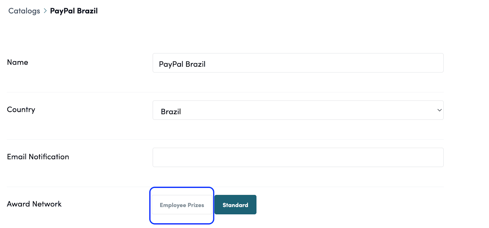 Once PayPal has been enabled by the Awardco team, they will have already assigned the PayPal catalog to an Award Network. In case you’d like to change the Award Network in the future, follow the steps below: