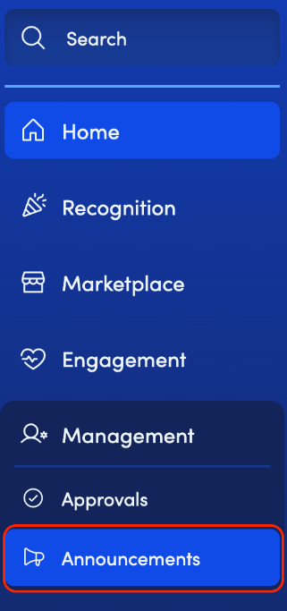 - Select “Announcements” under "Management" from the left navigation menu.
