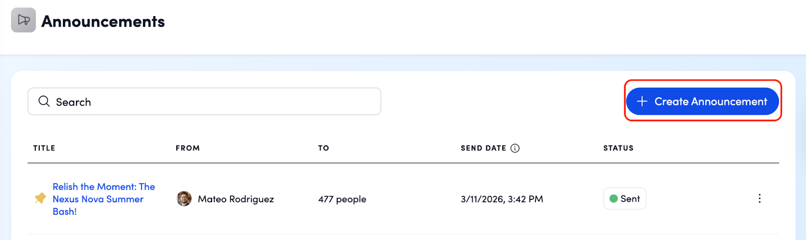 After an announcement is sent, you can review performance and adjust pin dates as needed. Use the announcements page to: