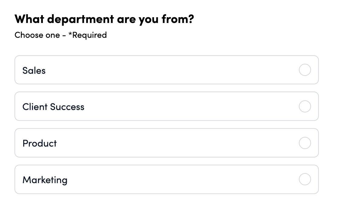 Single-Select: Similar to a multiple-choice question, a Single-Select question allows only one answer.