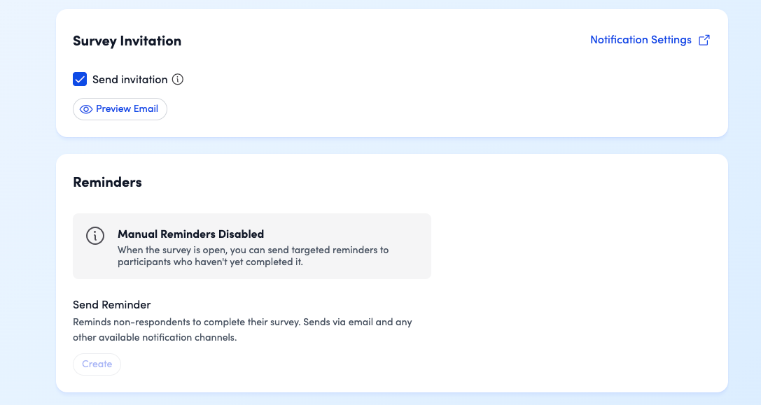 Configure how participants are notified about the survey.