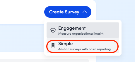 Note: Simple Surveys are for ad-hoc, one-time sends. They cannot be configured to recur weekly or monthly.