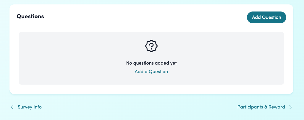 Click “Add Question” to create questions for your survey. You can choose from the following types: