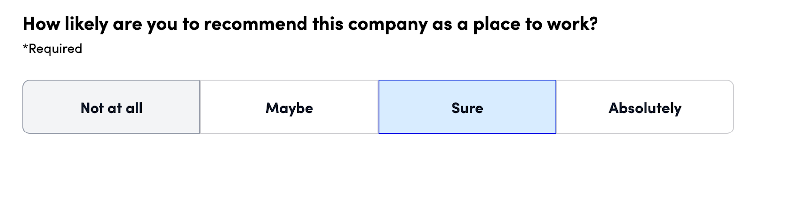 Scale Selection: Prompts the respondents to select a value on a scale (e.g., a Likert scale).