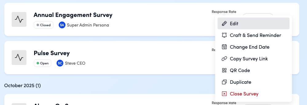 Click the three dots next to any survey to: