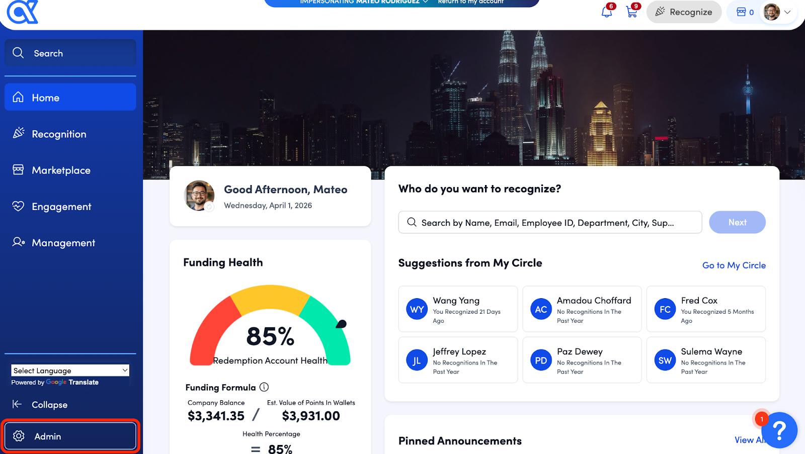 This article provides a high-level overview of the Admin Portal sections specific to managing Awardco Recognition and its underlying user configurations, aligned to the latest multi-product admin navigation.
