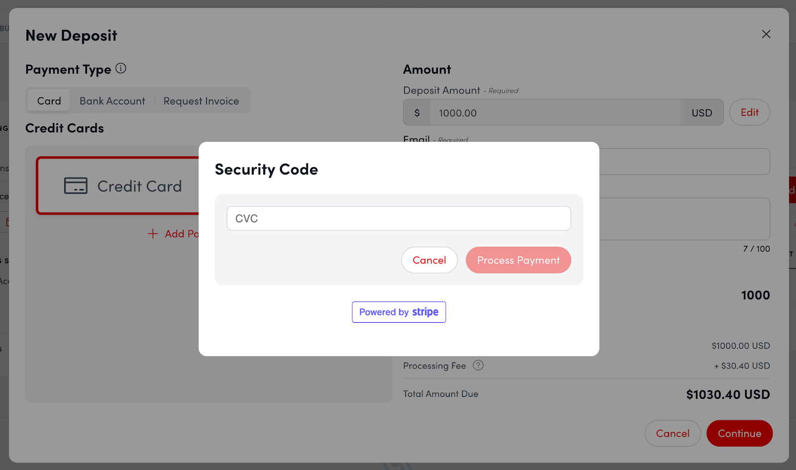 Confirm your card’s CVC and select Process Payment.