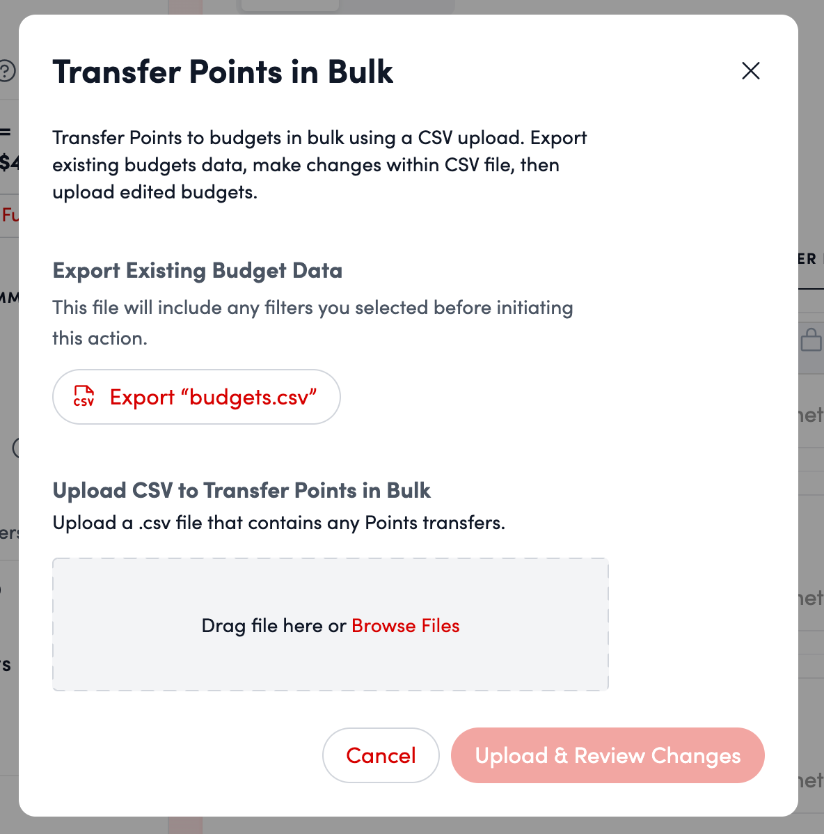 Click the "Transfer Points in Bulk" button. This action is visible only when you are viewing the specific Manager Budget Group.